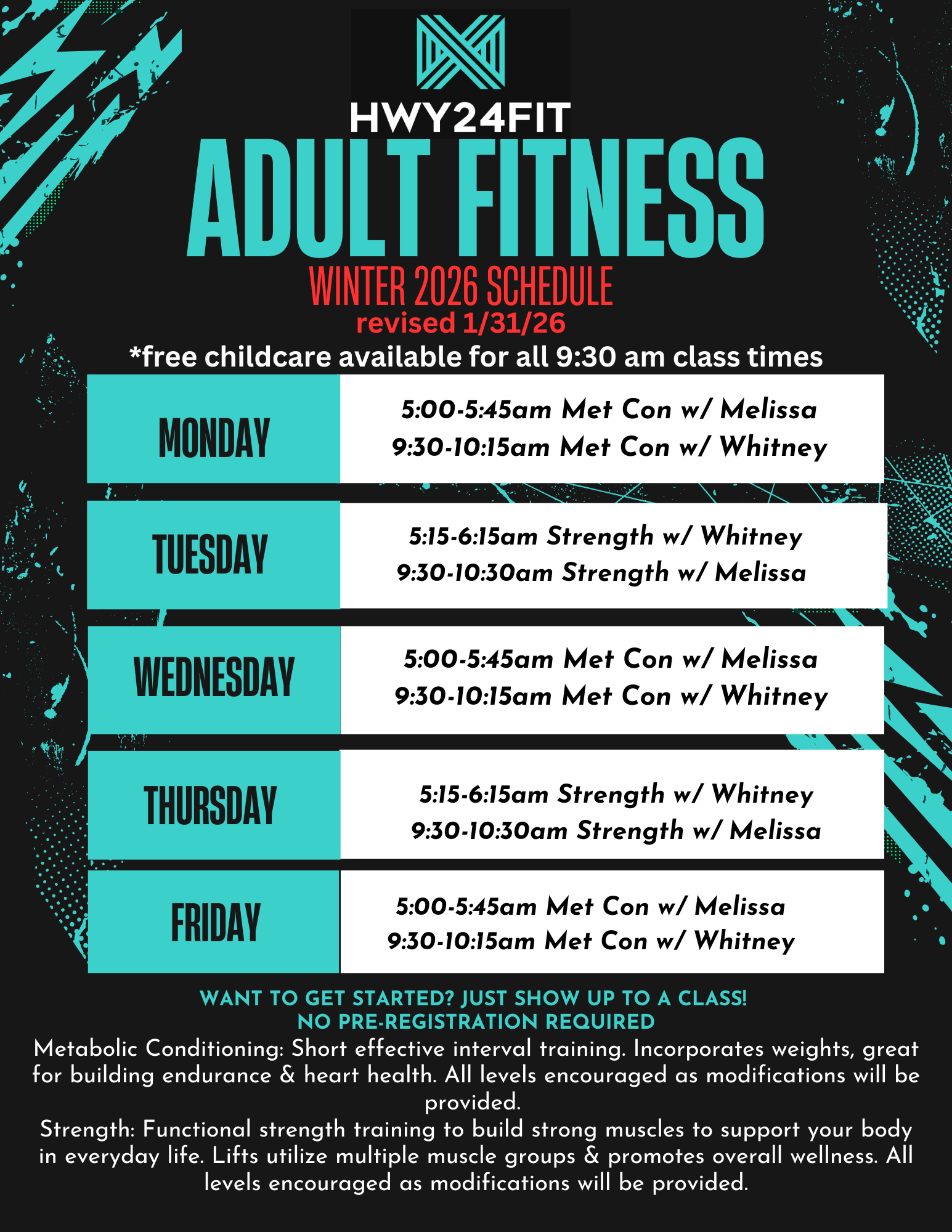 Our adult classes blend High-Intensity Interval Training (HIIT) with Strength Training for a balanced and effective workout. Each session is fully scalable, so whether you're just starting out or pushing to the next level, you'll find a place here. Our certified trainers are on site to lead every class.