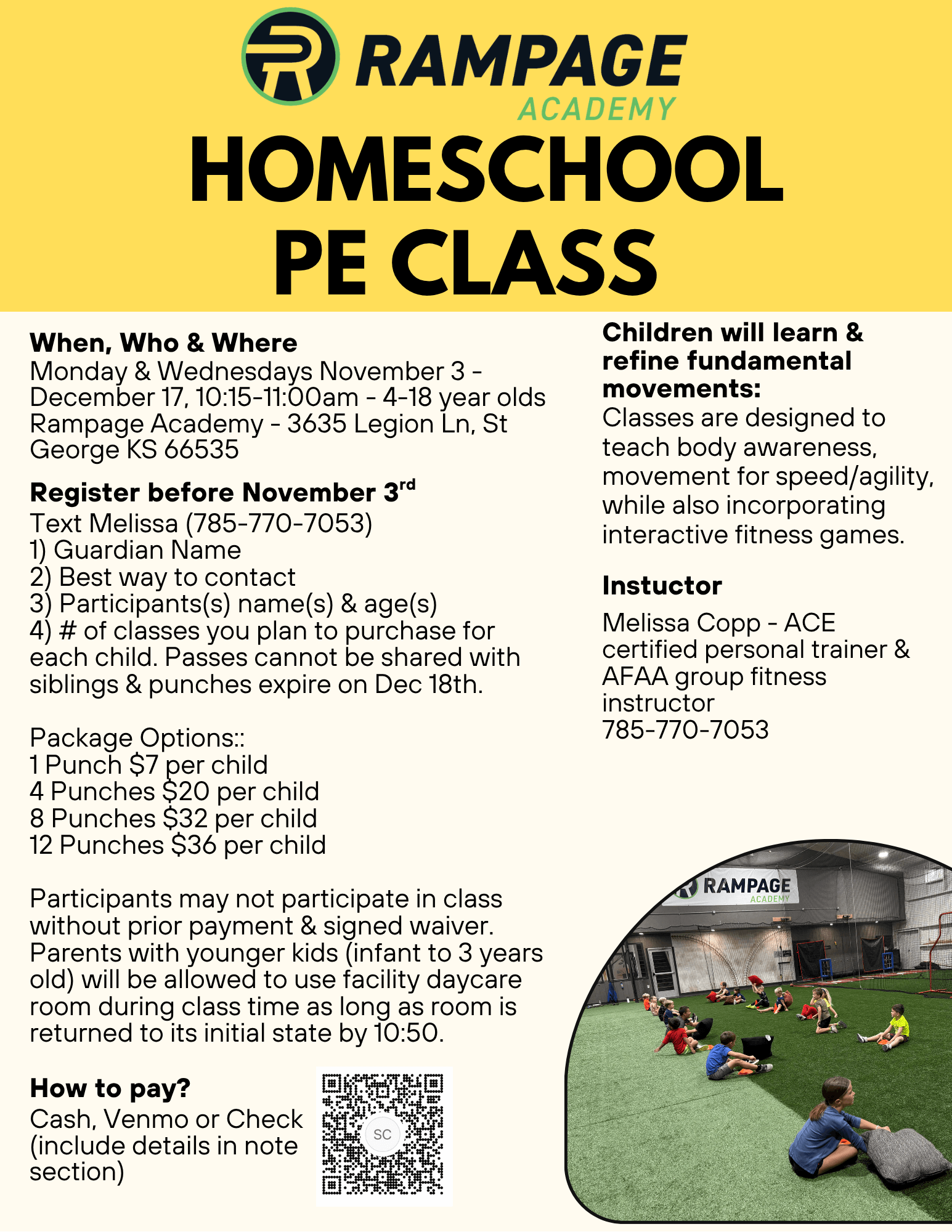 To register and purchase a class package, please contact Melissa Copp at smcopp@yahoo.com.